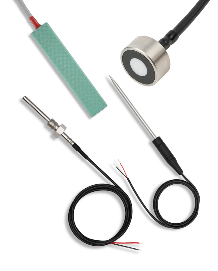 The sensor is the element that measures the temperature. The most used are: Pt100, Pt1000, NTC, PTC, Thermocouple, DS18B20, KTY.